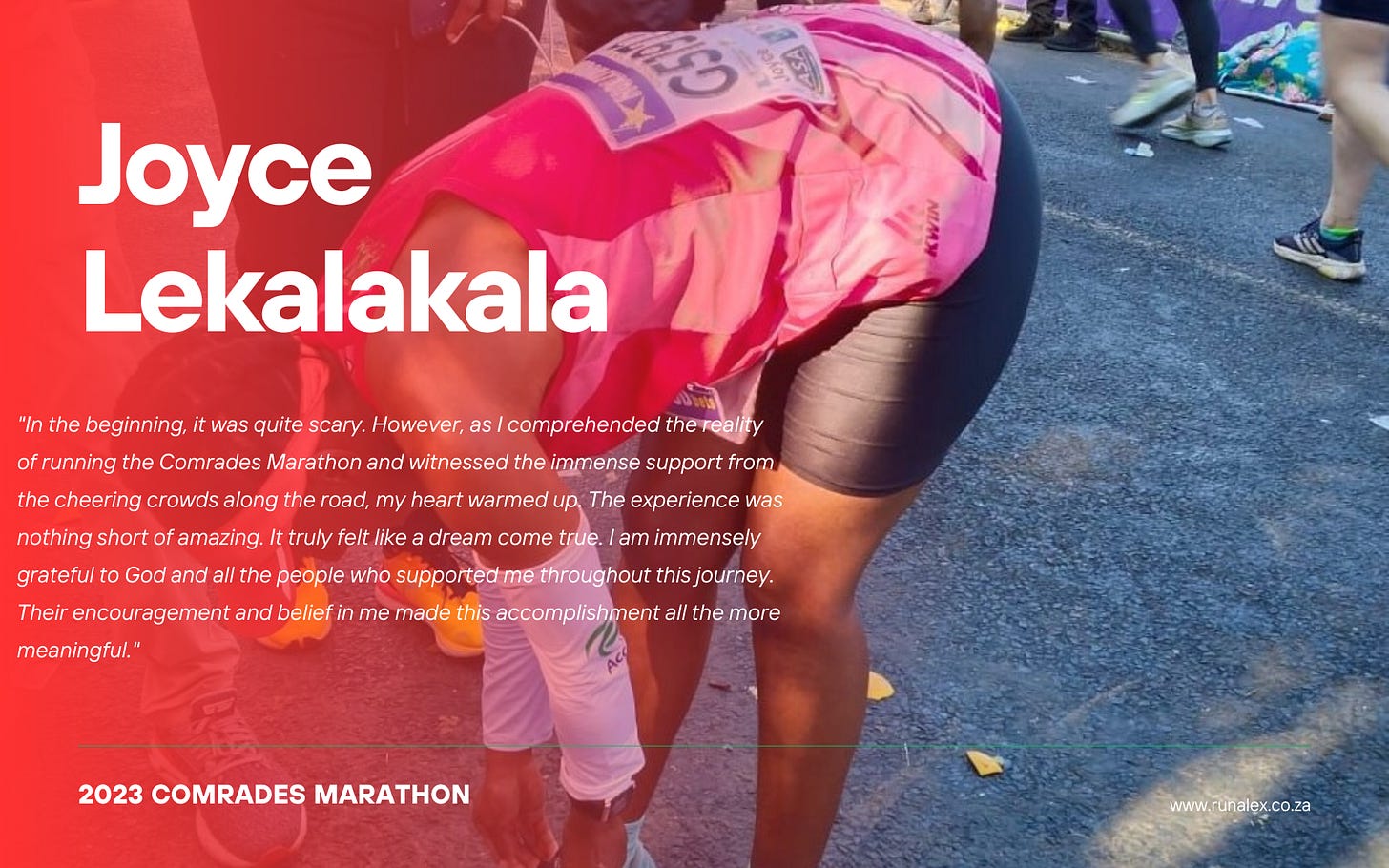"In the beginning, it was quite scary. However, as I comprehended the reality of running the Comrades Marathon and witnessed the immense support from the cheering crowds along the road, my heart warmed up. The experience was nothing short of amazing. It truly felt like a dream come true. I am immensely grateful to God and all the people who supported me throughout this journey. Their encouragement and belief in me made this accomplishment all the more meaningful." -