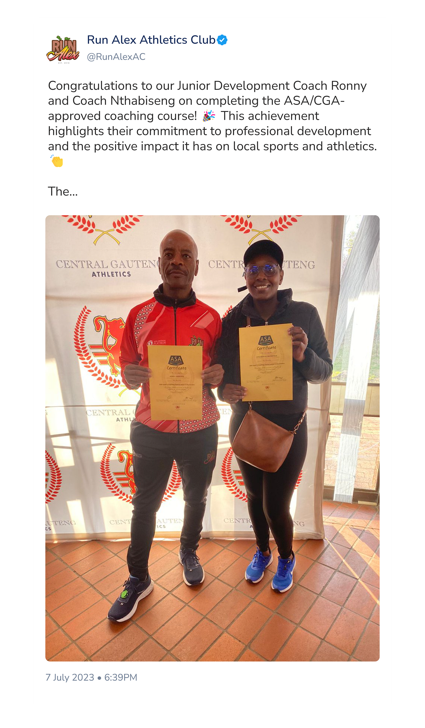 For more information about Run Alex Athletics Club, please visit our website: www.runalex.co.za or send us an email at runalexac@gmail.com / info@runalex.co.za